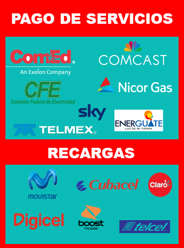 Paga aquí con nosotros los recibos de tus servicios a tiempo para evitar recargos, Además recarga los celulares de tus seres queridos para mantener el contácto.